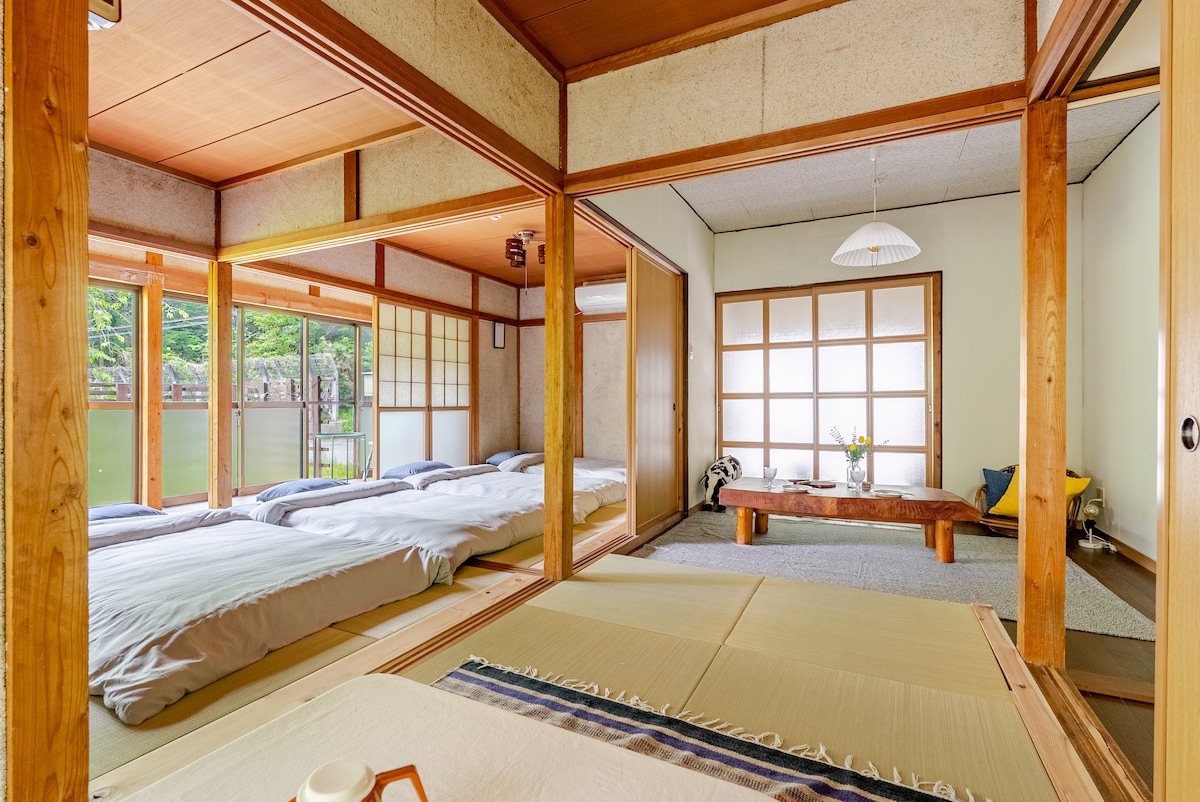 Einfaldur morgunverður er í boði án endurgjalds (brauð, kaffi, mjólk, vatn) Kyoto International Kokusai House Station Exit 1 free pick up to villa, Japanese style villa, total area 1000sqm, Traditional Japanese tatami room, can accommodate 1 3 guests, 13 mattresses, 3 toilets, 3 bathrooms (a jacuzzi bath with hot water 24 hours, two steam barrels), you can BBQ in the spacious courtyard, karaoke, drink tea, swing, enjoy pond koji carp.Eldavél, kæliskápur, örbylgjuofn, hnífapör og diskar sem og ókeypis te, þráðlaust net, Bus Hachine Bridge Station Farðu af stað á Hatse Bridge Station Walking Húsið er aðeins í 3 mínútna fjarlægð,🧖 gufusoðin sána🧖♀️ Þægindi Hárþvottalögur, hárnæring, líkamsþvottur, handþvottur • Tannburstar, tannkrem, uppþvottalögur • • Baðhandklæði og andlitshandklæði • Náttföt (leiga) * Við munum ekki taka til í herberginu þínu meðan á dvölinni stendur Skoðunarferðir Ryuriko-in Temple, Sansen-in Temple, Kinkakuji, Ginkakuji, Heian-jingu Shrine, Kiyomizudera, Gion, Nijo-jo Castle, Arashiyama, Togetsubashi, Fushimi Inari Shrine, Lake Biwa.
