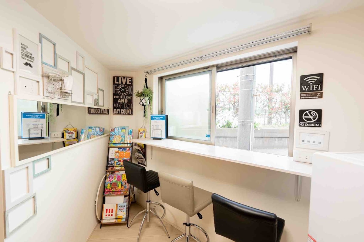 4 mín. göngufjarlægð frá JR Tsurumi-stöðinni. Þetta er 1LDK (52 ㎡) herbergi með japönsku herbergi í ryokan-stíl sem rúmar allt að 4 manns. Þetta er nútímalegt herbergi en einnig gamla japanska andrúmsloftið. Það er í 8 mínútna göngufjarlægð frá Keikyu Tsurumi-stöðinni sem er beintengd frá Haneda-flugvelli. Gott aðgengi að JR- og Keikyu-línum gerir aðgengi að Tókýó (Shibuya, Shinjuku, Asakusa o.s.frv.), Yokohama og Kamakura. Svefnherbergið er með hefðbundnum gráum stucco vegg en það gefur þér nútímalega mynd og japanska tilfinningu. Þetta herbergi er nostalgískt andrúmsloft fjarri ys og þys borgarinnar, sérstaklega ef þú slakar á með breiðum rattanstól. Hvíta flísalagða eldhúsið í stofunni er með fjögurra brennara gaseldavél og þú getur eldað mikið í einu. Þér er frjálst að nota ókeypis háhraða WiFi meðan á dvölinni stendur. ■Atriði sem þarf að hafa í huga Það er annasamur vegur í nágrenninu, þú munt heyra í ökutækjum. Vegna þess að þetta er hefðbundin japönsk byggingu er hljóðið auðvelt. Þú gætir haft áhyggjur ef þú ert viðkvæm/ur fyrir hljóði.Hafðu fyrri umsagnir okkar í huga.