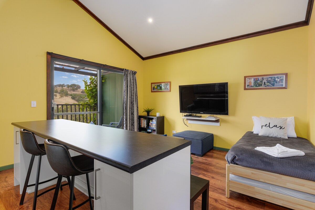 • Beautifully appointed cabin with splendid views, located in a tranquil bush setting • Only 6 min from the heart of Bridgetown • Cook meals in a fully-equipped kitchen or on the outdoor BBQ • Sleeps 2 comfortably and can accommodate up to 6 people (4 in Cabin, 2 in vintage caravan) • Spacious bathroom with under-floor heating, large shower, toilet, vanity and views, accessible via covered verandah • For a full video tour, visit our YouTube channel @forestedgecabinwa