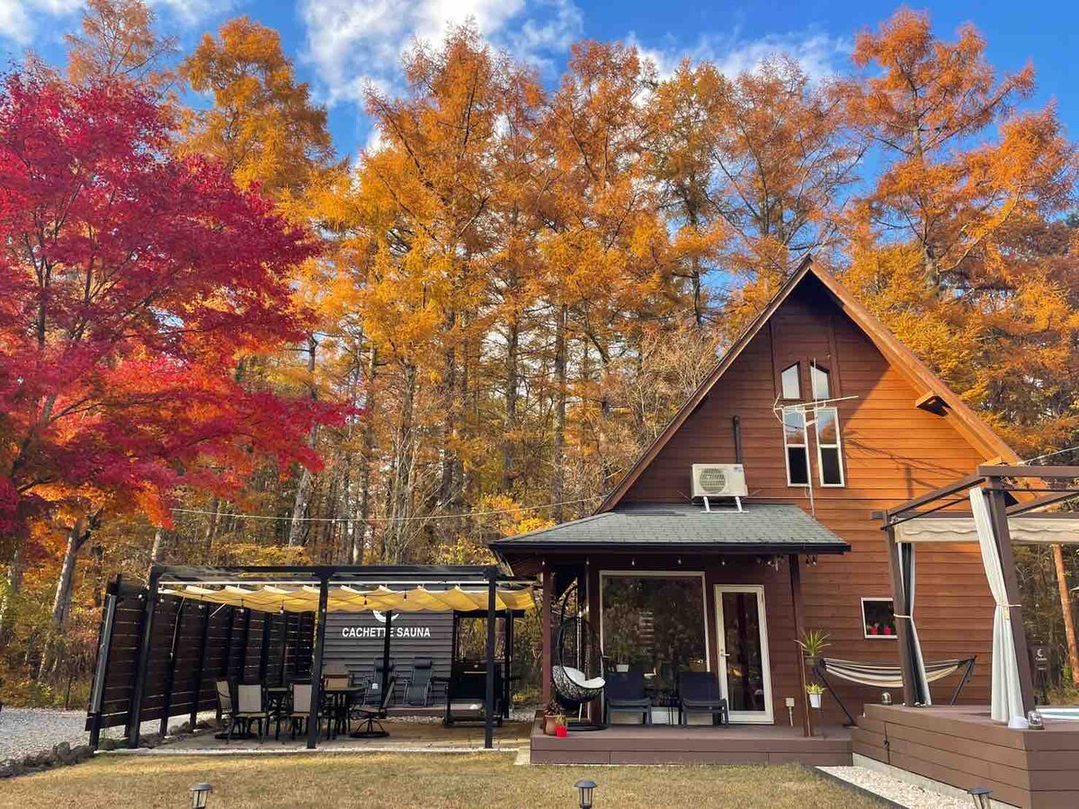 Slakaðu á og slappaðu af í náttúrunni í kring, rólegu og stílhreinu rými. Þú getur notið yfirgnæfandi einstakrar tilfinningar, gufubaðs, vatnsbaðs með neðansjávarvatni frá Mt. Fuji, heitur pottur og grill.Leiga Cachette Foret Fjöldi 2 til 8 manns Gufubaðið sem er leigt út er sjálfsafgreiðsla og hefur engin tímamörk. (gegn gjaldi) ■Þjónusta■ Allt-þú-can-drink kaffi, te og grænt te hvenær sem er! Það er allt í lagi að koma inn. Þar er einnig fullbúið eldhús. Kæliskápur, örbylgjuofn, brauðrist Að auki eru eldunaráhöld, diskar, hnífapör, glös o.s.frv. einnig í boði. Á heildina litið líður þér eins og þú sért frá útlöndum. Það eru 3 bílastæði. Varúðarráðstafanir við■ bókun ■ Vinsamlegast vertu viss um að hafa samband við okkur daginn fyrir dvöl þína. Vinsamlegast segðu okkur flutningatækin við komu * Vinsamlegast ekki koma á fæti fótgangandi vegna þess að það er staðsett á bak við skóginn. Ef þú kemur eftir 20:00, vinsamlegast hafðu samband við okkur. Vinsamlegast vertu viss um að segja mér farsímanúmerið sem hægt er að hafa samband við á daginn