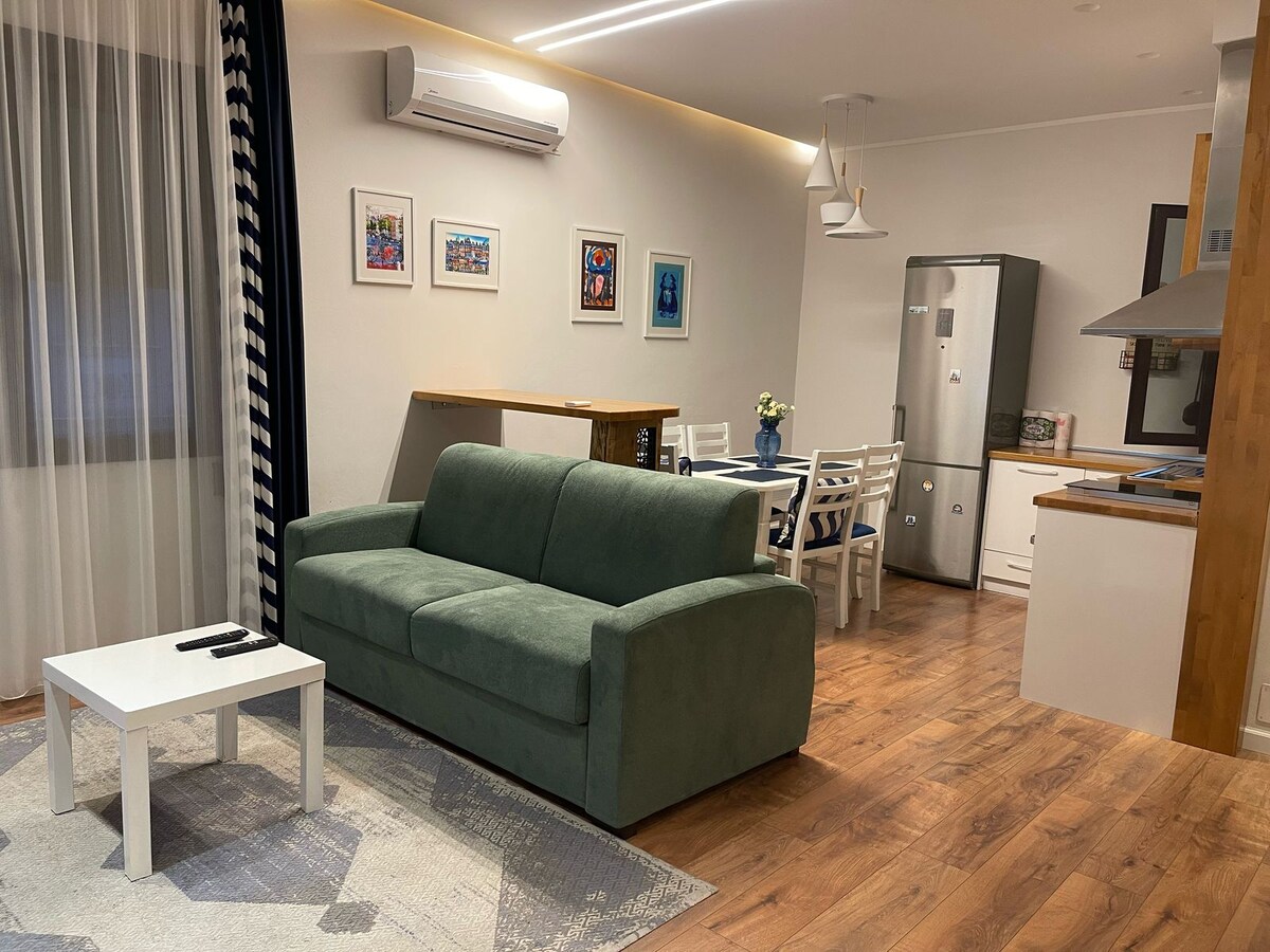 Nýuppgerð íbúð í mjög miðri byggingu sem nýlega var byggð á 9. hæð með lyftu. Nálægt göngusvæðinu og strætóstöðinni. Öruggt og ávallt upplýst svæði, þjónað af fjölda verslana, bara, veitingastaða og matvöruverslana. Íbúðin er 35 m á breidd, tvíbreiða rúmið er með útsýni yfir svalir með útsýni yfir borgina í átt að norður-fjöllunum, stofuna með svefnsófa og snjallsjónvarpi, litlum en vel búnum eldhúskrók og einkabaðherbergi.