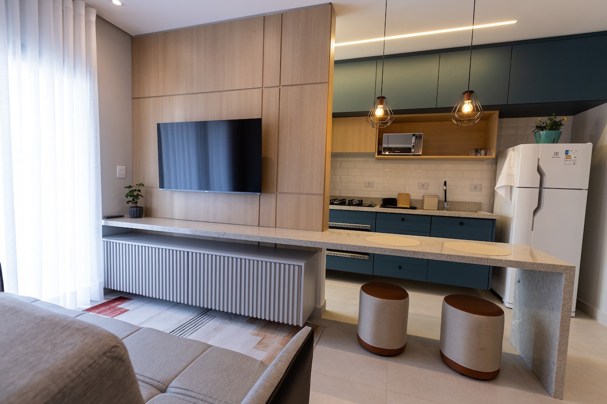 Studio moderno e aconchegante c cozinha e enxoval