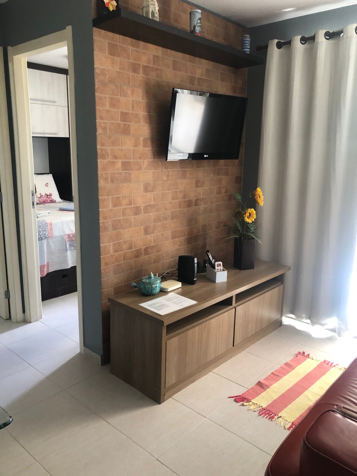 Apto Térreo, tranquilo e com segurança em um condomínio fechado. Sala de Tv, sala de jantar e a cozinha completa com fogão, geladeira , micro-ondas e outros utensílios. 2 quartos, uma de casal e uma de solteiro. Banheiro com ducha higiênica. Check-in e Check-out se for após ao meio-dia , combinar para entrega das chaves no local a ser indicado pela anfitriã