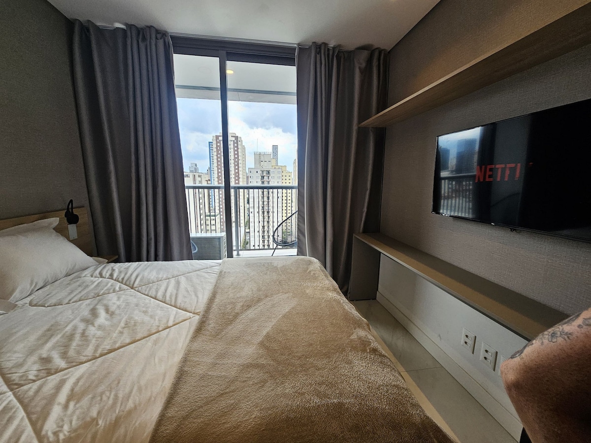 Nútímalegt, þægilegt og orkumikið athvarf í hjarta Tatuapé, steinsnar frá neðanjarðarlestinni og Boulevard og Tatuapé-verslunarmiðstöðvunum. Stúdíóið er með vel hannað 24m² (24 fermetra) með mjög þægilegu hjónarúmi, myrkvunargluggatjöldum, loftræstingu, 55 tommu snjallsjónvarpi, hröðu þráðlausu neti, fullbúnu eldhúsi (ísskáp, eldavél, örbylgjuofni, áhöldum og kaffi til að byrja daginn rétt) ásamt rúmfötum, handklæðum og einföldum snyrtivörum.