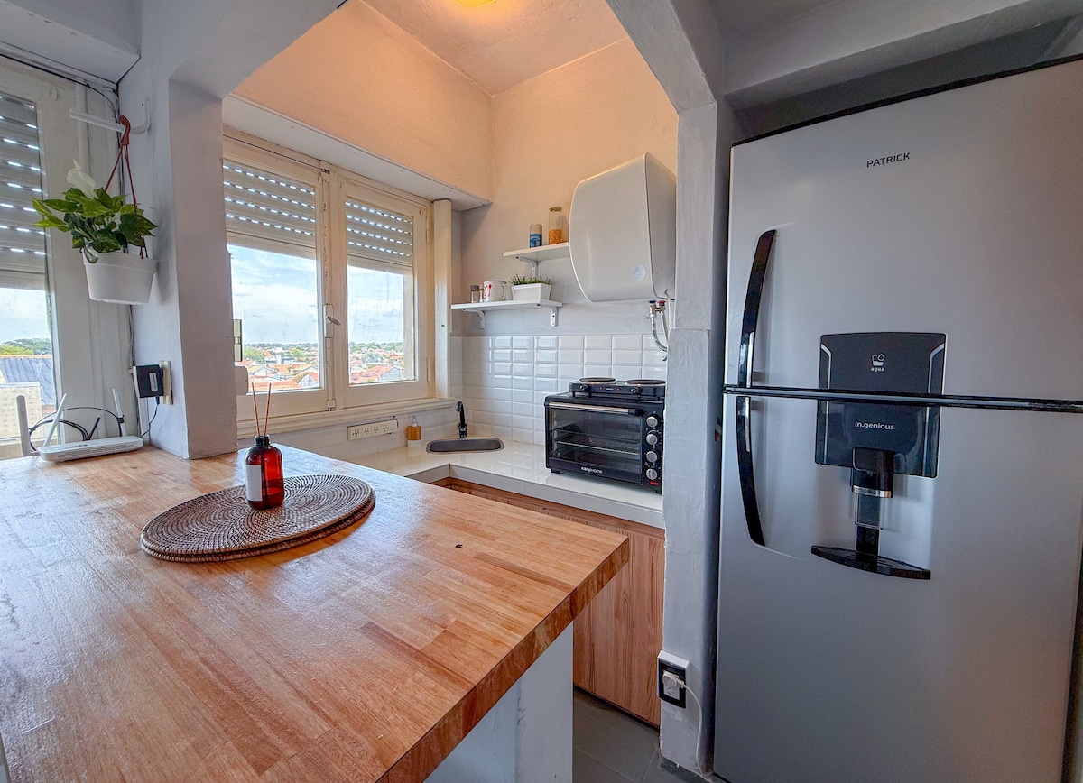 Tiny Beach Home: Confort con vista al mar Despertate con vistas panorámicas al mar desde este espacio acogedor, a solo 200 metros de la playa. Equipado con horno eléctrico, heladera, climatizador, pava eléctrica, escritorio y silla ergonómica, Smart TV de 32", Wi-Fi, cama de dos plazas y placard. Acceso por escalera y parrilla comunitaria para disfrutar al aire libre. Perfecto para relajarte o trabajar en Mar del Plata. ¡Reservá ahora y asegurá tu lugar!