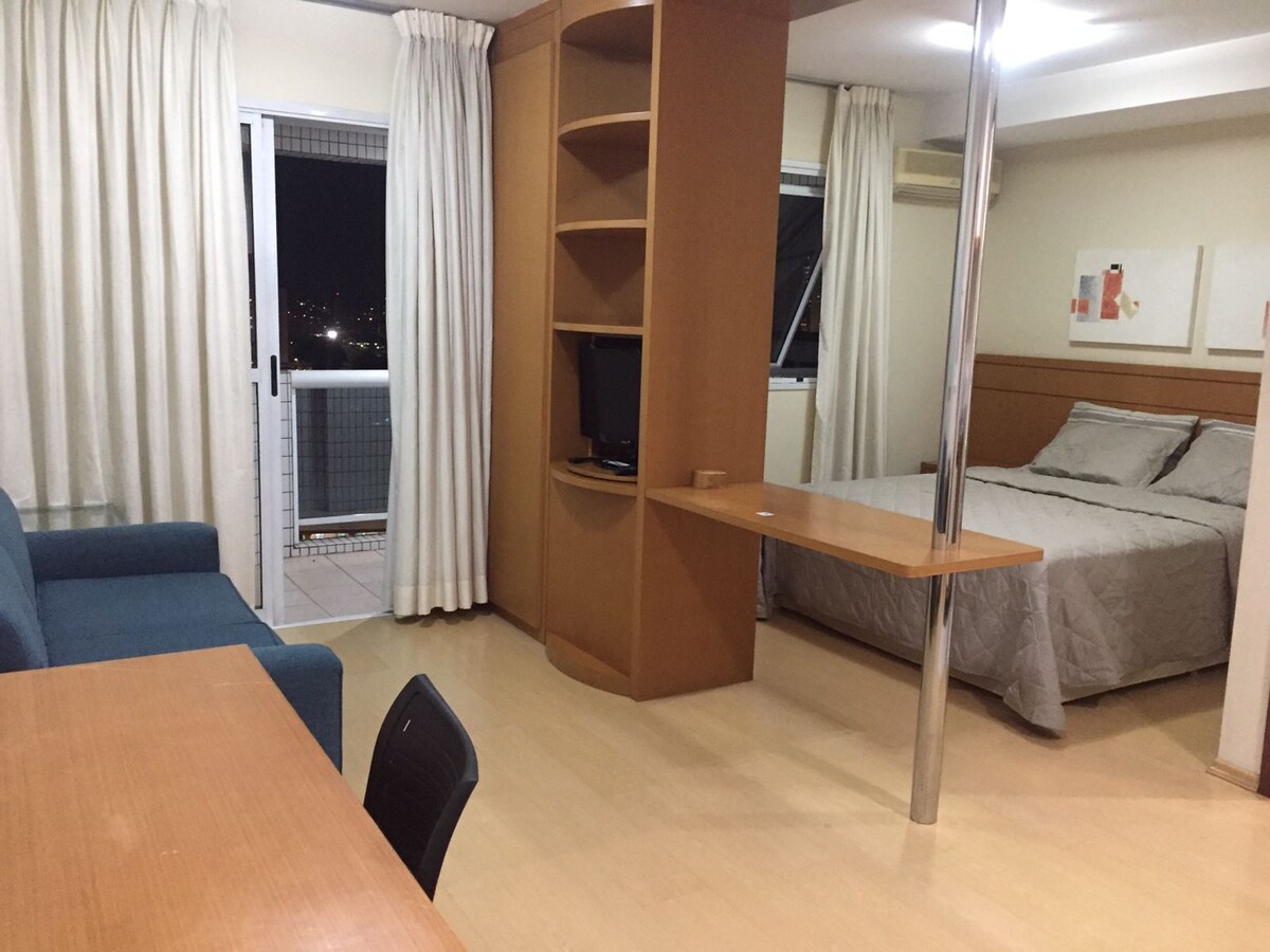 Frábær staðsetning í Osasco, SP. Í 50 metra fjarlægð frá Pinheiros og Tietê-ánni með greiðan aðgang að suður- og vestursvæðum São Paulo. 10 mín. frá Osasco stöðinni og 9 km frá Alphaville. Í eigninni er að finna 1 svefnherbergi og stóra stofu með 1 svefnsófa, bæði með loftviftu, snjallsjónvarpi, 1 baðherbergi og vel búnu eldhúsi. Stöð með þráðlausu neti 350 MB. Cond. with 24-hour concierge, swimming pool, gym and pet place. Litla gæludýrið þitt hefur verið samþykkt! Bókaðu á besta stað í borginni!