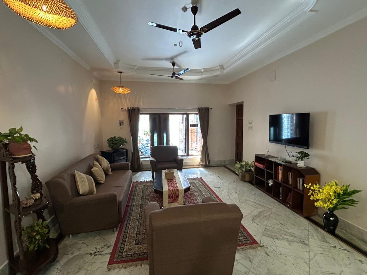 Slakaðu á með allri fjölskyldunni á þessum friðsæla gististað með gróðri í miðborginni þaðan sem allir mikilvægir staðir eru nálægt dæmi- 1. Kashi Vishwanath 2,7 km 2. Kaal Bhairao 2.1km 3. Varanasi Railway jn. 2.7km 4. Búddist place Sarnath 7,2 km 5. Flugvöllur 23 km 6. Ramnagar fort 10km 7. Dashwamegh ghat 2.9km 8. Assi ghat 6,2 km 9. BHU 7,7 KM 10. SAREE sýningarsalur á háskólasvæðinu 11. Staðbundinn markaður og matarsvæði í göngufæri 12. Pond is there where you must take a morning walk.