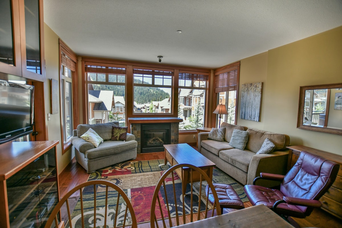 Slakaðu á, leiktu þér og byggðu upp minningar í fallegu íbúðinni okkar. SATT.. skíði inn/út. Njóttu ferskra gönguleiða/brauta frá dyraþrepi þínu! Íbúðin er staðsett á Orient lyftunni sem veitir þér skjótan aðgang að bæði Morrisey og Todd Mountain. Njóttu glæsilegs útsýnis og horfðu á skíðamenn/dýralífið úr heita pottinum á svölunum á efstu hæðinni. Njóttu vel búna eldhússins/kaffibarsins okkar. Svefnherbergin okkar þrjú eru steinsnar frá hæsta teigkassanum í BC og veitir þér nægt pláss fyrir fjölskylduna þína. Við hlökkum til að taka á móti þér!