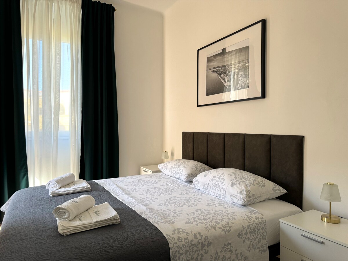 Ovaj moderni smještaj savršen je odabir za obitelj ili dva para.Ugodno uređeno u mirnom gradskom kvartu .Dvije velike sobe s udobnim krevetima i posteljinom od 100% pamuka.Sve je novo i čistoća je najvažnije kriterij kod domačina.Blizina stare gradske jezgre(5 minuta automobilom ili 15 minuta hoda) i gradskih plaža.Opremljeno svim aparatima za ugodan boravak.Klima uređaj koji hladi i grije čitav prostor od 106 m2 .Sve je uređeno i opremljeno da bi se Vi osječali kao u svom domu❤️