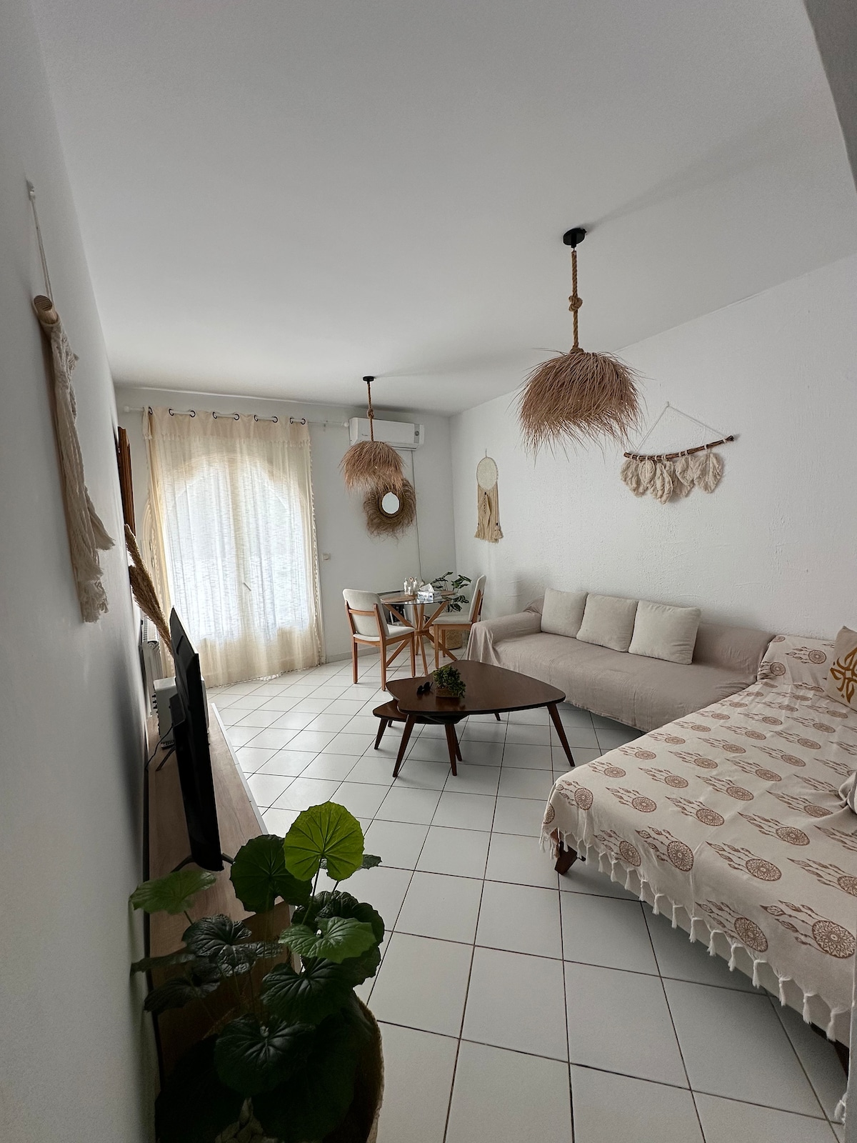 Í miðju íbúðarhverfinu í Khereddine, 20 m frá ströndinni, er gimsteinn falinn. Augnablik hreinnar hamingju ríkir í þessari fallegu villugólfi, vandlega skreytt til að gleðja öll skilningarvitin. Nálægt öllum þægindum, vel búin, með sjálfstæðum aðgangi, svölum með útsýni yfir hafið og verönd sem er fullkomin fyrir grillið þitt. Samsett úr tveimur svefnherbergjum, baðherbergi, eldhúsi og stofu sem eru krýnd með fallegri lofthæð.