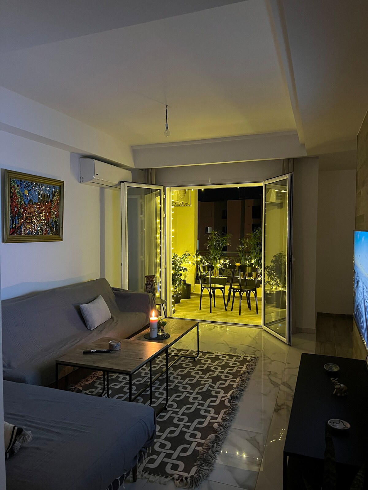 Íbúðin er nýlega byggð með loftkælingu svo að dvölin verði sem ánægjulegust. Njóttu nálægðar veitingastaða, matvöruverslana og bara til að fullnægja öllum óskum þínum. Staðsetning íbúðarinnar okkar er einnig stór kostur. Á aðeins 20 mínútna göngufjarlægð er hægt að komast til La Marsa og bjóða upp á enn meiri afþreyingu, verslanir og veitingastaði. Auk þess er Carthage, með sína ríku sögulegu arfleifð, í aðeins 10 mínútna akstursfjarlægð, öruggt og öruggt hverfi