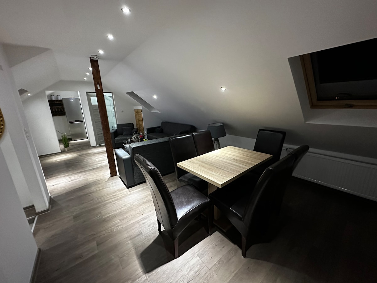 Þessi einstaka, rólega 2 herbergja 5-stjörnu íbúð (DTV-flokkun)er staðsett í % {referßerthal í South Palatinate í miðjum Palatinate-skógi og er með stofu sem er 73 m á háaloftinu. Eldhúsið var búið hágæða raftækjum og granítborðplata,lúxusbaðherbergi,málmlaust traust viðarrúm sem og Parketgólf með ólífum úr kirsuberjum og kalksteinsplast og 8 stórum E- Velux gluggum og ytra byrði og góð einangrun tryggja þægilegt andrúmsloft í herberginu.