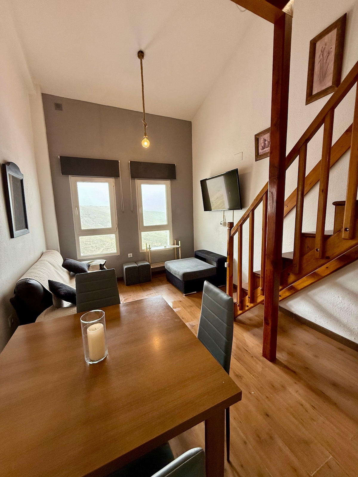 Stórkostleg íbúð í Sierra Nevada. Stofa með arni, hlýleg og notaleg. Innréttuð með hágæðahlutum og hönnun. Flott herbergi og svefnsófi í stofu. Það er með vel búið baðherbergi. Hér er verönd til að njóta útsýnisins, sólsetursins og bílastæðanna. Innritun er algerlega á Netinu og örugg, það er engin þörf á að bíða eftir því að fjarlægja lykla, allt kóðað. Gistiaðstaða fyrir ferðamenn sem vilja njóta snjós, náttúru, þæginda og hvíldar.