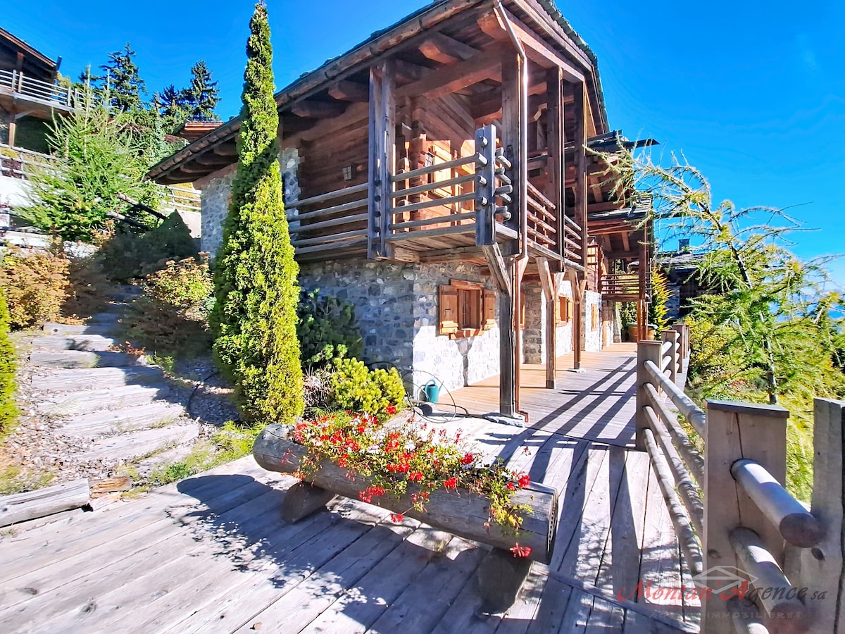 Emplacement idyllique, sans voisins, proche des stations de ski d'Anzère (10 minutes en voiture) de Crans-Montana (40 minutes) et de la ville de Sion (30 minutes). Vue imprenable sur plusieurs hauts sommets des Alpes (4'000m) et sur la vallée. Le chalet est accessible du printemps à l'automne en voiture par une route non goudronnée. Il se trouve au milieu d'un domaine skiable, en bordure de piste et l'hiver ne peut être rejoint qu'à skis ou en raquettes.