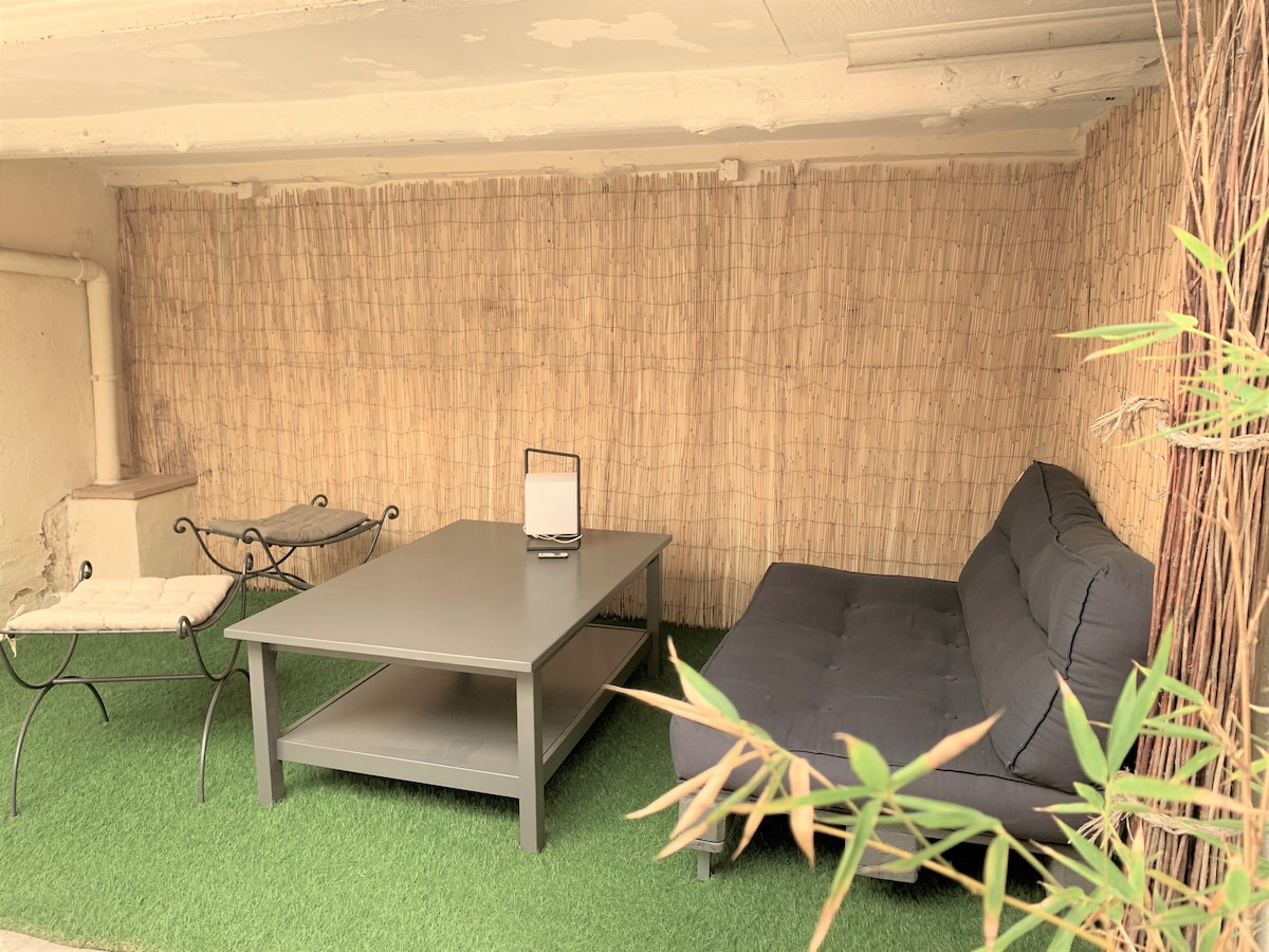 fallegt svæði, endurnýjað stúdíó með einkaverönd