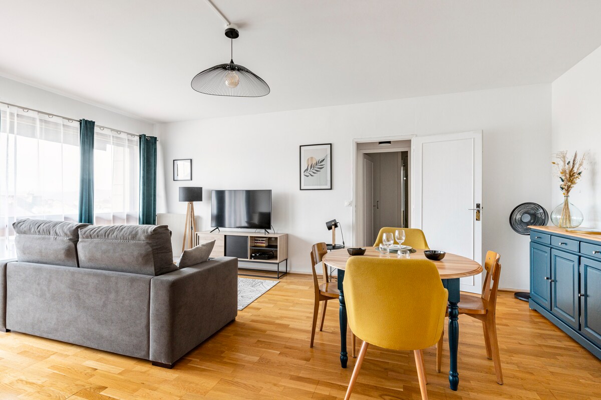 "Le Parc" íbúðin okkar er staðsett í "Villa du Parc" búsetu, sem hefur öruggan aðgang. Göngugarinngangur er á staðnum og öruggur inngangur á bílastæðinu sem hægt er að opna með merki. Sérstakt bílastæði er yfirbyggt og númerað. Íbúðin samanstendur af inngangi, rúmgóðri stofu með fullbúnu eldhúsi, stórum þægilegum hornsófa og sameiginlegri borðstofu, rúmgóðu svefnherbergi og baðherbergi.