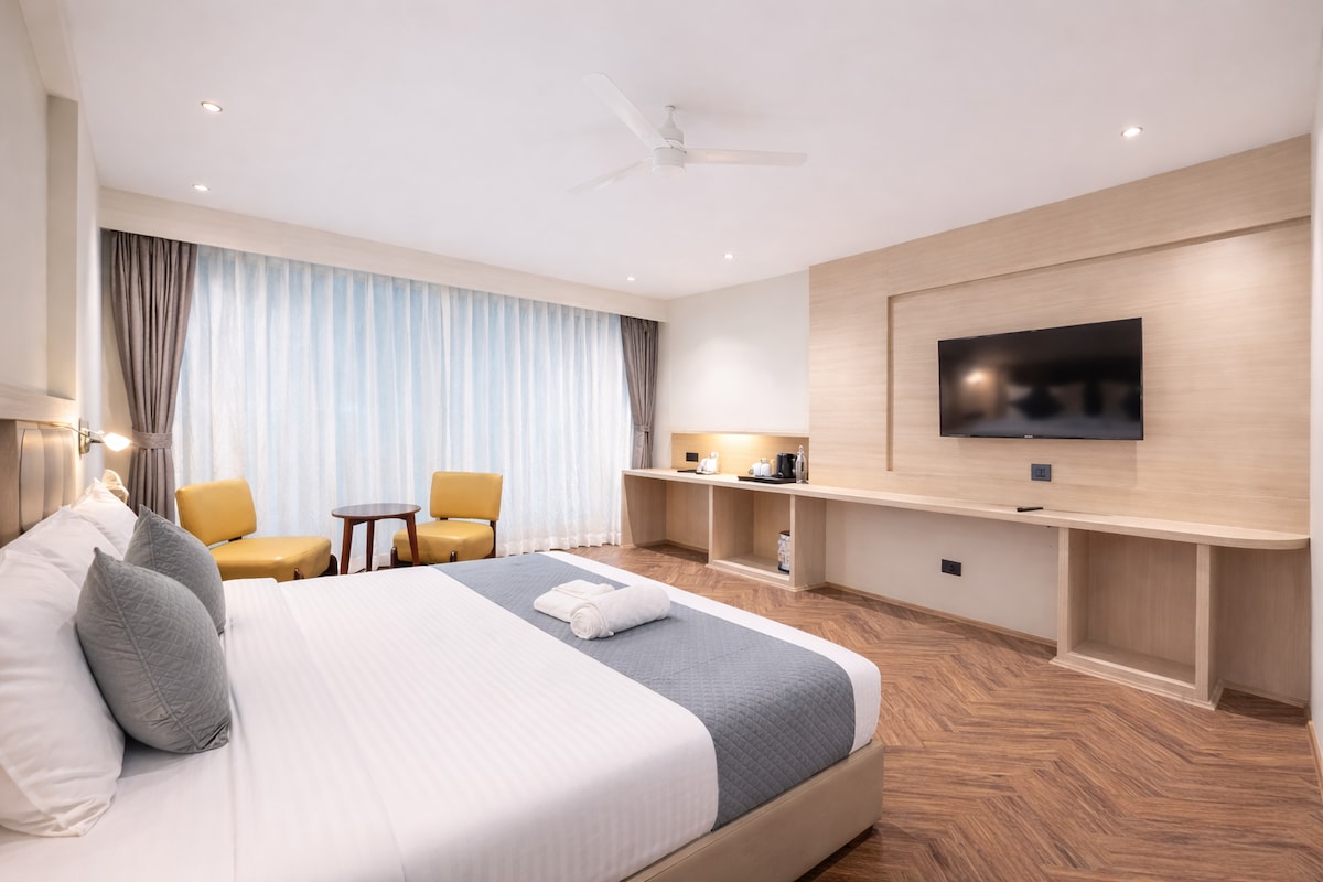 Nestled in a perfect location just 10 minutes away from M.G Marg, our hotel offers the perfect balance of convenience and calm. Designed to be family friendly, the property is ideal for the couples, families and leisure travelers looking for comfort and beautiful surroundings also guests can enjoy delicious meals at our in-house restaurant making dining easy and relaxing without stepping out.