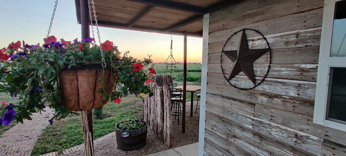 Combination of Old and New... Feel refreshed when you stay in this rustic gem. SC can sleep 4 comfortably. The kitchenette is equipped with a coffee maker, toaster, electric kettle, microwave and refrigerator. The bathroom has extra amenities in case you forget something. The shower, which has exposed copper plumbing, is sure to impress. Outside there is a small patio with adirondack chairs and gas fire pit that over look the cattle pasture and the stunning Panhandle sunsets.