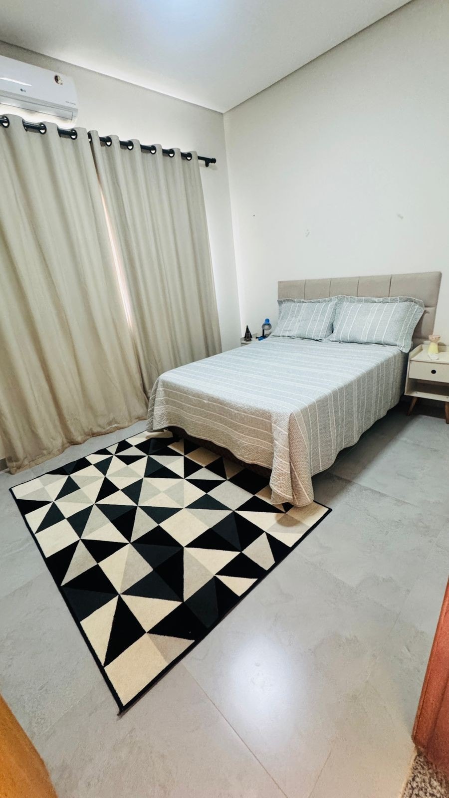 Einkasvíta með sjálfstæðum inngangi Komdu þér fyrir í stórri svítu með fullbúnu baðherbergi, þægilegu rúmi og inverter loftræstingu. Herbergið er búið snjallsjónvarpi, hægindastól, skrifborði og stól fyrir vinnu eða nám, straujárni, handklæði og áhöldum (gleri, diski og hnífapörum). Fullkomið fyrir þá sem vilja næði, þægindi og hagkvæmni, hvort sem það er vegna vinnu eða tómstunda. Njóttu kyrrlátrar og vel útbúinnar gistingar! *(499 stafir)*