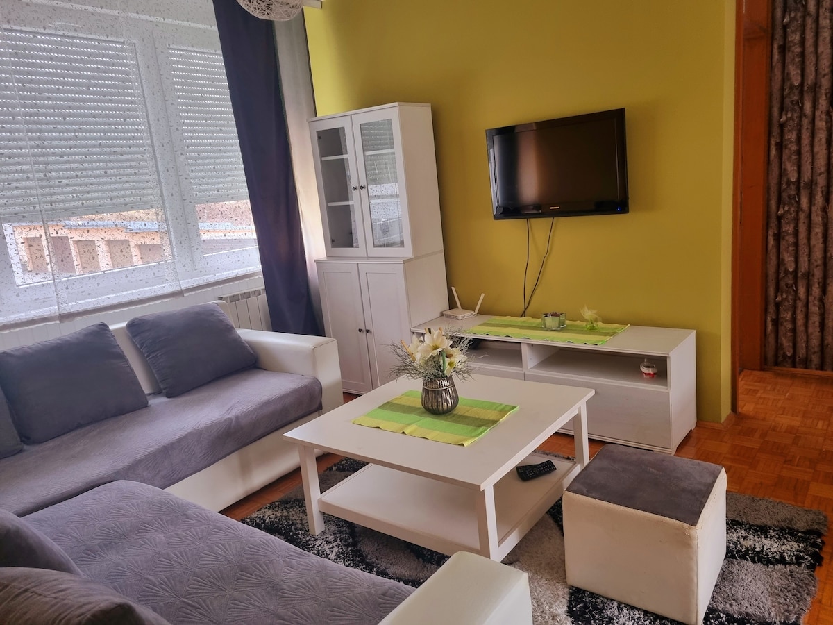 Stúdíóíbúð OAZA Það er staðsett í rólegu umhverfi og frábærri staðsetningu nálægt miðborg og verslunarmiðstöðvum. Stúdíóíbúðin er 65 fermetrar að stærð og 33 fermetrar af verönd og hefur þrjú aðalrúm auk aukarúms. Eldhúsið er búið öllum viðeigandi tækjum, spanhelluborði, ofni, ísskáp, kaffivél, gufugleypi, vatnskatli o.s.frv. Stofan er búin Android Smart TV. Öll stúdíóíbúðin er loftkæld.