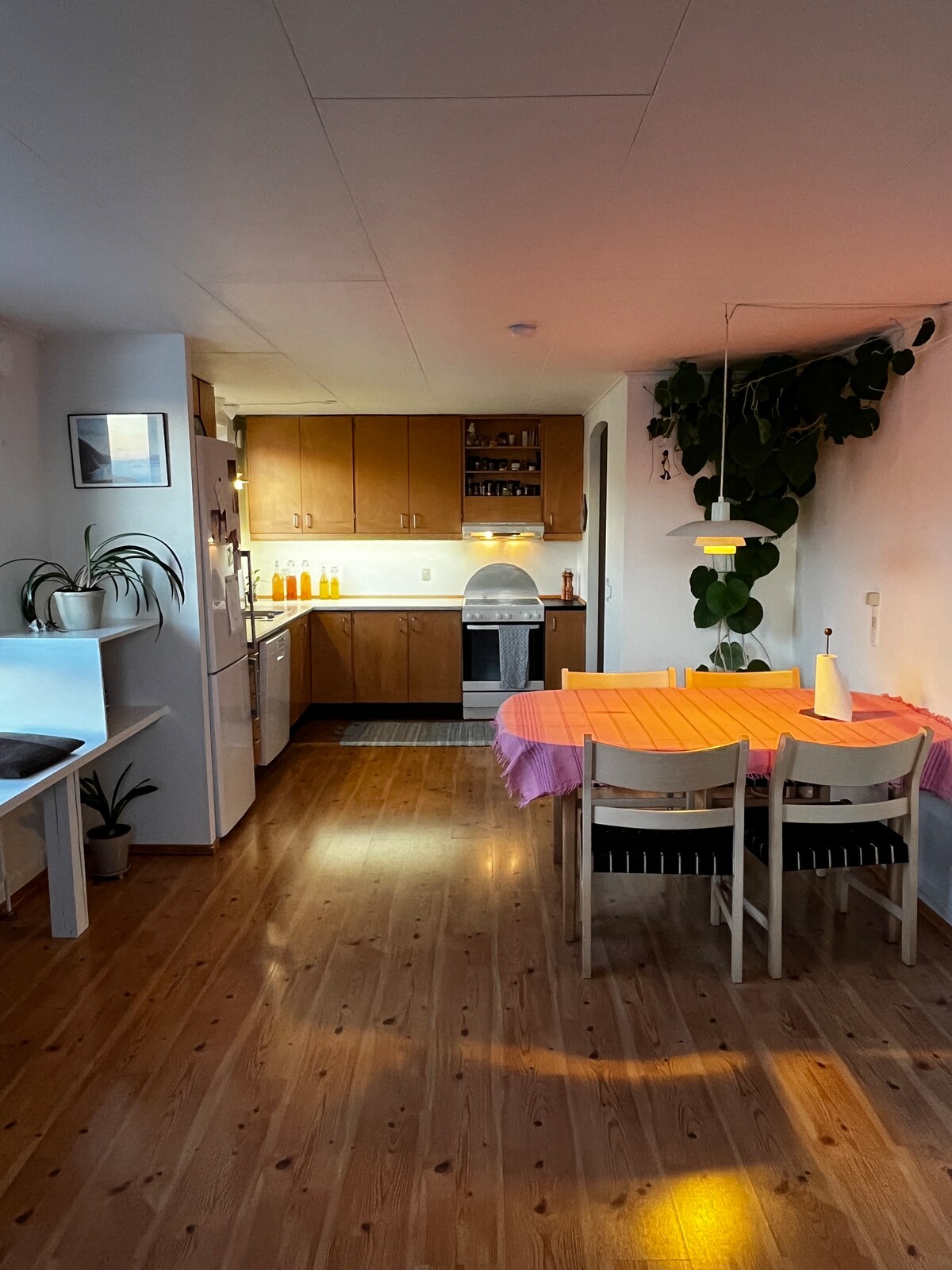 Kjallariíbúð sem er 21 fm (226 ferfet) með einkabaðherbergi/salerni og inngangi. Með eldhúskrók með ísskápi og einum hellu, örbylgjuofni, borðstofusvæði og öllu sem þarf til að elda.