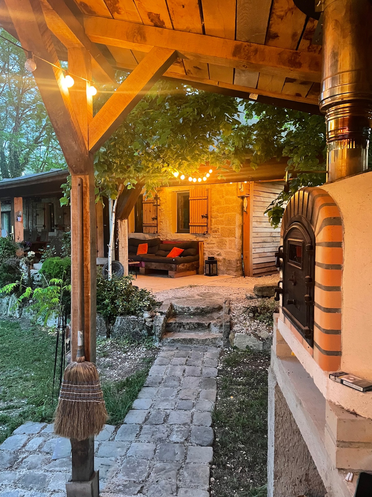 Fimm stjörnu þægindakofinn okkar er staðsettur í hjarta skógar og bíður þín hinum megin við brú sem er meira en 20 metrar. Engir nágrannar hér. Speglaður gluggi úr gleri gefur þér óhindrað útsýni yfir rólegt og afslappandi landslag án þess að óttast að fylgjast með þér. Á kvöldin, þegar þú hefur komið þér fyrir í notalega rúminu þínu, getur þú valið á milli þess að fylgjast með dýrunum eða horfa á kvikmynd í skjávarpa okkar... og með stjörnubjörtum himni okkar er það eins og að sofa undir stjörnubjörtum himni. ✨