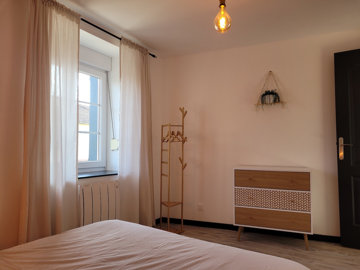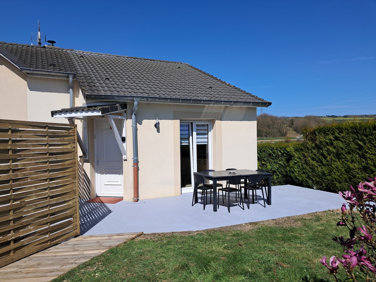 Gisting nálægt stríðsstað (Douaumont) 2 km frá miðbæ Verdun. Fullkomið fyrir pör og fjölskyldur með börn. Þú munt njóta þæginda hennar, svefnherbergisins með 160 x 200 rúmi og sjónvarpi, stofu á jarðhæð, svefnsófa (140 x 190), sjónvarps, eldhússvæðis og sturtuherbergis, salerni (ungbarnabúnaður, regnhlífarúni og barnastóll að beiðni) Þú munt hafa einkaaðgang að lokinni grasleið. Þú munt gista í viðbyggingu eiganda með útsýni yfir garðinn