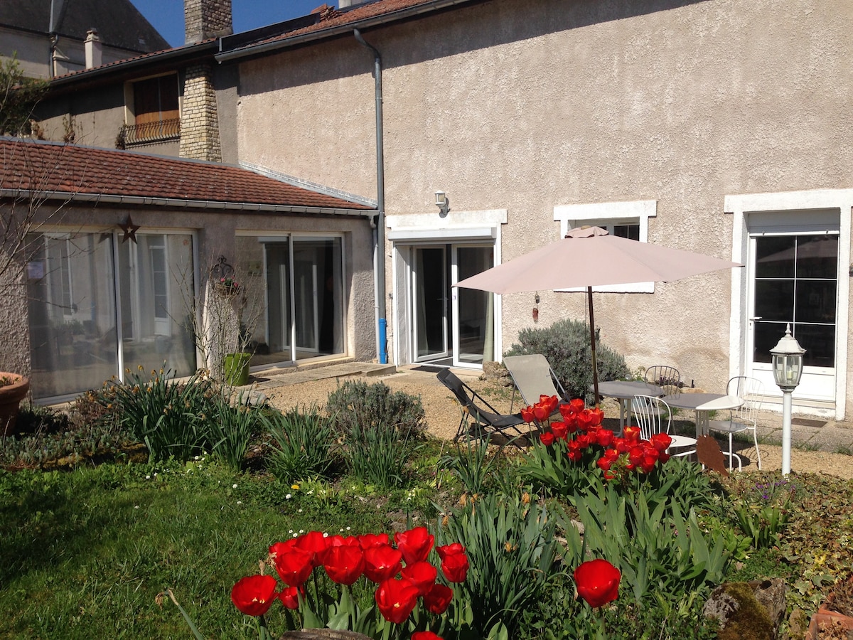 Þetta hús er umkringt skógi vöxnum garði og blómstrandi á jarðhæð í fullbúnu eldhúsi, stofu og borðstofu, baðherbergi með sturtu og salerni Uppi: "Emerald Room" með hjónarúmi, "Nature Room" með hjónarúmi og í röð 1 lítið háaloftsherbergi með 1 einbreiðu rúmi og að lokum 1 sekúndu lítið háaloftsherbergi með 1 einbreiðu rúmi Helst staðsett nálægt verslunum og þjónustu, það mun leyfa þér að eiga fallegar stundir
