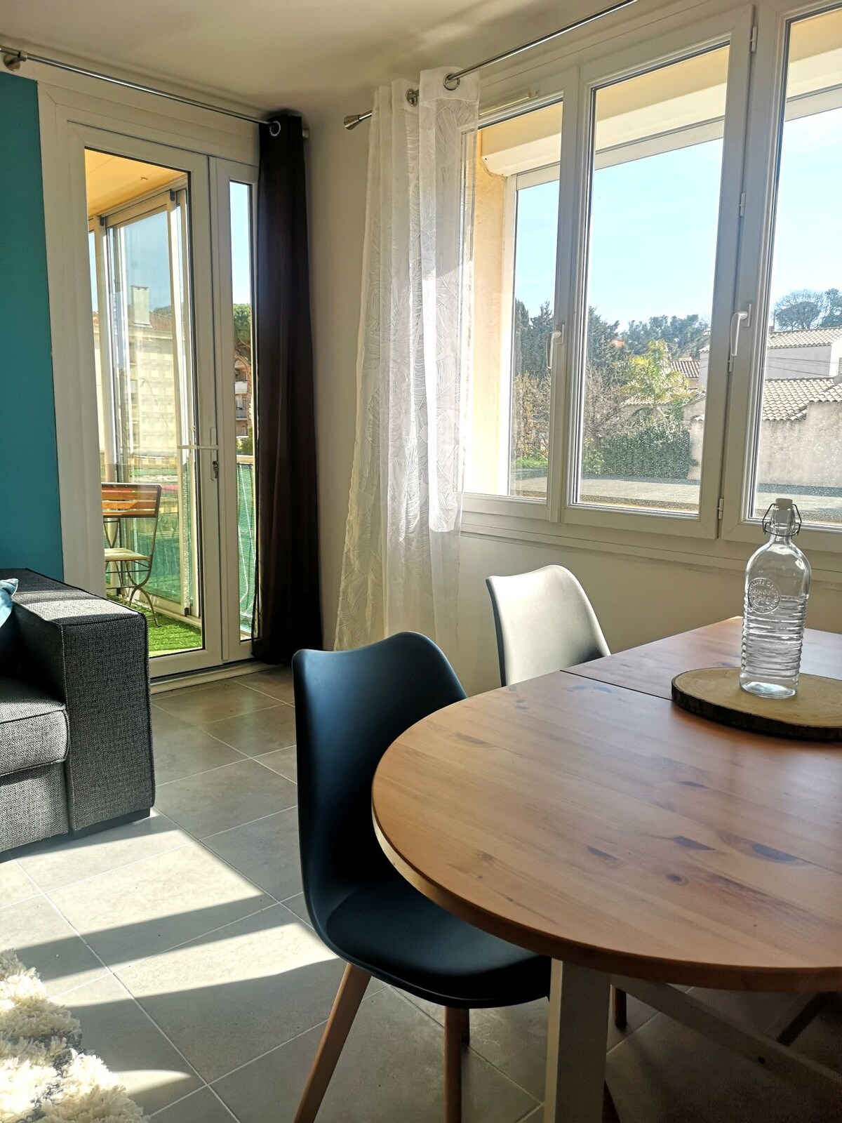Appartement T3 de 58m2, quartier calme, avec 2 chambres et grand canapé convertible rapidement. Cuisine équipée four, micro-onde, lave vaisselle Toilettes séparés Véranda plein sud accessible de la grande chambre ou du salon, idéale pour un café au soleil 🌞 Logement parfaitement située à 4min de la sortie d'autoroute Deux grandes surfaces à 700m Piste cyclable et arrêt de bus dans la rue parallele Accès à la mer à 20min à pied (bar, restau) avec petit Port pour le bateau direction Toulon (2€)