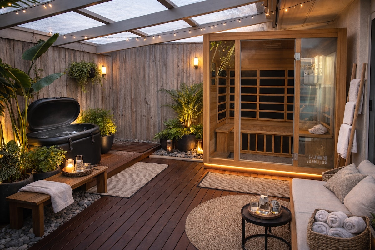 Heilsulind við ströndina | Sundlaug, gufubað, ísbað