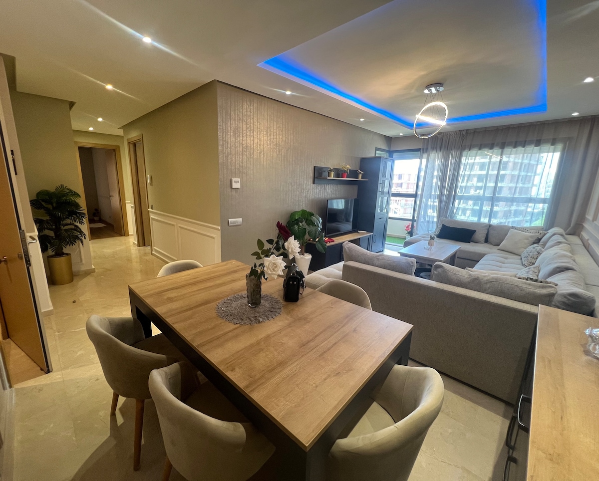- Heil íbúð í 5 mínútna akstursfjarlægð frá ströndinni, - Staðsett í 2 mínútna fjarlægð frá lestarstöðinni sem auðveldar þér að skipuleggja heimsóknina - Samanstendur af 2 svefnherbergjum og nútímalegri opinni stofu með nútímalegu eldhúsi sem er opið að stofunni, baðherbergi með sturtu. - Innréttuð og fullbúin með allri nauðsynlegri aðstöðu og húsgögnum - Nálægt verslunum, bönkum, veitingastöðum, kaffihúsum og snarli. - Marokkósk pör eru ekki leyfð.