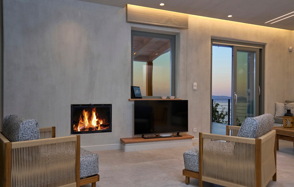 Kynnstu óviðjafnanlegum lúxus á heillandi Skopelos-eyju. Villan okkar er umkringd tignarlegum furuklæddum tindum og býður upp á friðsæld. Slappaðu af við endalausu laugina, umvafin mögnuðu útsýni eða slakaðu á í kyrrlátri garðvininni. Rúmgóð útisvæði okkar, þar á meðal innbyggt setusvæði, bjóða upp á afslöppun og al fresco-veitingastaði. Inni bíður íburðarmikið eldhús sem tryggir að hvert augnablik er eitt af eftirbreytni og þægindum. Helsta afdrep þitt á grísku eyjunni vekur athygli.