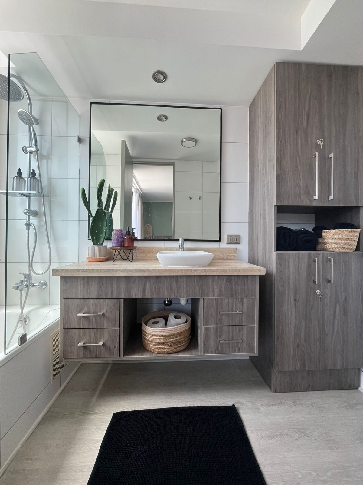 Rodéate de estilo en este destacado espacio y relájate en esta escapada única y tranquila. Este departamento cuenta con finos detalles y decoración pensada en el descanso y comodidad de los huéspedes. Cama King con sábanas blancas, escritorio, televisor, aire acondicionado en la habitación y terraza espaciosa. Cocina full equipada, living Tv y aire acondicionado y un sofa cama que duerme bien una persona adulta, con colchas y almohadas comodas para un tercero