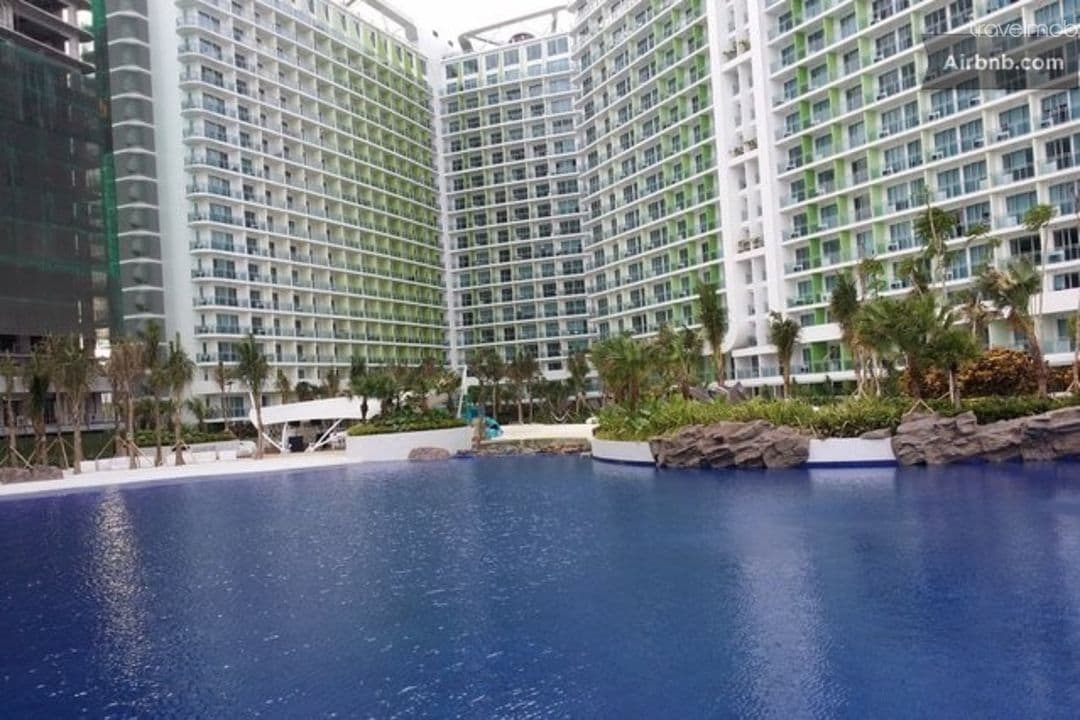 Working remotely (w/ a 300mbps wi-fi) or wanting a staycation (w/ Netflix on a 50" tv)? Worry no more as our cozy 1-BR haven in Azure Urban Resort Residence, the first ever large-scale man-made beach paradise in Metro Manila, can cater to both needs! Located just 13km away from NAIA airport & just 700m away from SM Bicutan Mall, the resort boasts in its amazing views and world class amenities such as white sand man-made beach, wave pool, beach bar, spa, & children’s playroom, to name a few.