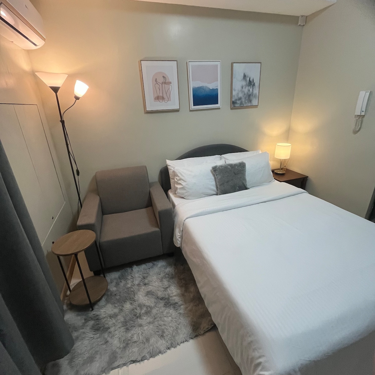 (Ekkert eldhús svo að eldamennska er ekki möguleg/leyfð. Vinsamlegast lestu hverfishlutann til að fá frekari upplýsingar um Poblacion, Makati og hvað það býður upp á.) Upplifðu semblance af sveitinni með töfrandi útsýni yfir iðandi höfuðborgina. Sólin rís hérna megin í borginni og við tökum á móti þér með besta vaknaðinum á hverjum degi. Poblacion, Makati er griðastaður fyrir listræna og afþreyingarleitendur. Þú getur rölt á næstu listasýningu um helgar eða fengið þér drykk á börum, krám og næturklúbbum.