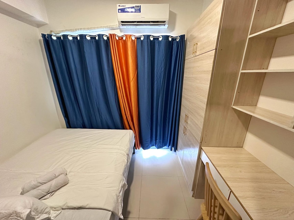 Nýuppgerð, öfgafull stílhrein og lúxus 24sqm 1br eining fyrir fullkominn dvöl þína! Light Residences, fyrir utan að hafa þægindi af dvalarstað, hefur eigin verslunarmiðstöð með Savemore matvörubúð, restos, salon, apótek, þvottaþjónustu, kvikmyndahús og margt fleira! Það er einnig í nokkurra mínútna fjarlægð frá stærstu verslunarmiðstöðvum landsins - SM Megamall, Shangrila Plaza og Robinsons Galleria. Fáeinar mínútur að keyra einnig til Ortigas, BGC og Makati viðskiptahverfa. Fullkomin dvöl í raun!