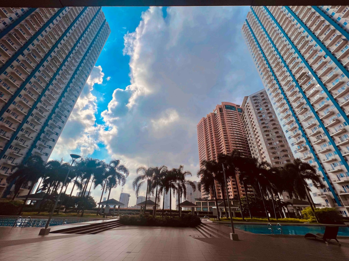 🌟 Afslappandi gisting nálægt Moa | Þægindi, þægindi og stíll 🌟 Verið velkomin í notalegu og glæsilegu íbúðina okkar í Shore 2 Residences, Pasay City – stutt í SM Mall of Asia, SMX Convention Center, IKEA og Manila Bay sunset Strip. Tilvalið fyrir pör, fjölskyldur, balikbayana og viðskiptaferðamenn 🛏️ Af hverju íbúðin okkar er sérstök: ✨ Ágætis staðsetning ✨ Þægilegar og flottar innréttingar ✨Sjónvarpsskemmtun ✨ Fullbúið ✨ Auka fríðindi ✨ Friðsæll staður með svölum/verönd Aðgangur að ✨ sundlaug og þægindum