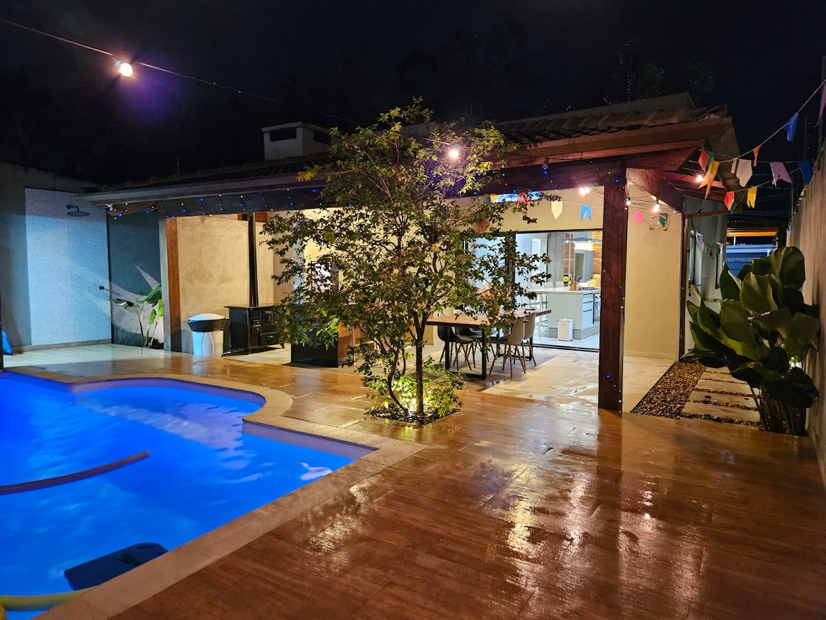 Mjög nálægt ströndinni (30 metrar) Komdu með fjölskyldu þinni á þennan þægilega stað til að slaka á og hlusta á hljóð sjávarins *ÞETTA ER EKKI Á RIVIERUNNI* 📍 Hús staðsett í Praia da Enseada, í hverfinu Jardim das Canções, við hliðina á SESC. ✨Róleg gata með litlum umgangi 🏠Ný og nútímaleg bygging 🛋️Notalegar skreytingar 🍽️Vel búið eldhús og grillsvæði 💧 Sundlaug með óson- og sólarhitun ☀️ Á veturna, þegar sólin skín, nær hitastigið hámarki sem nemur 26°C. Dýpt: 1,40m 🚐 Við tökum ekki við VÖRUBÍLUM.