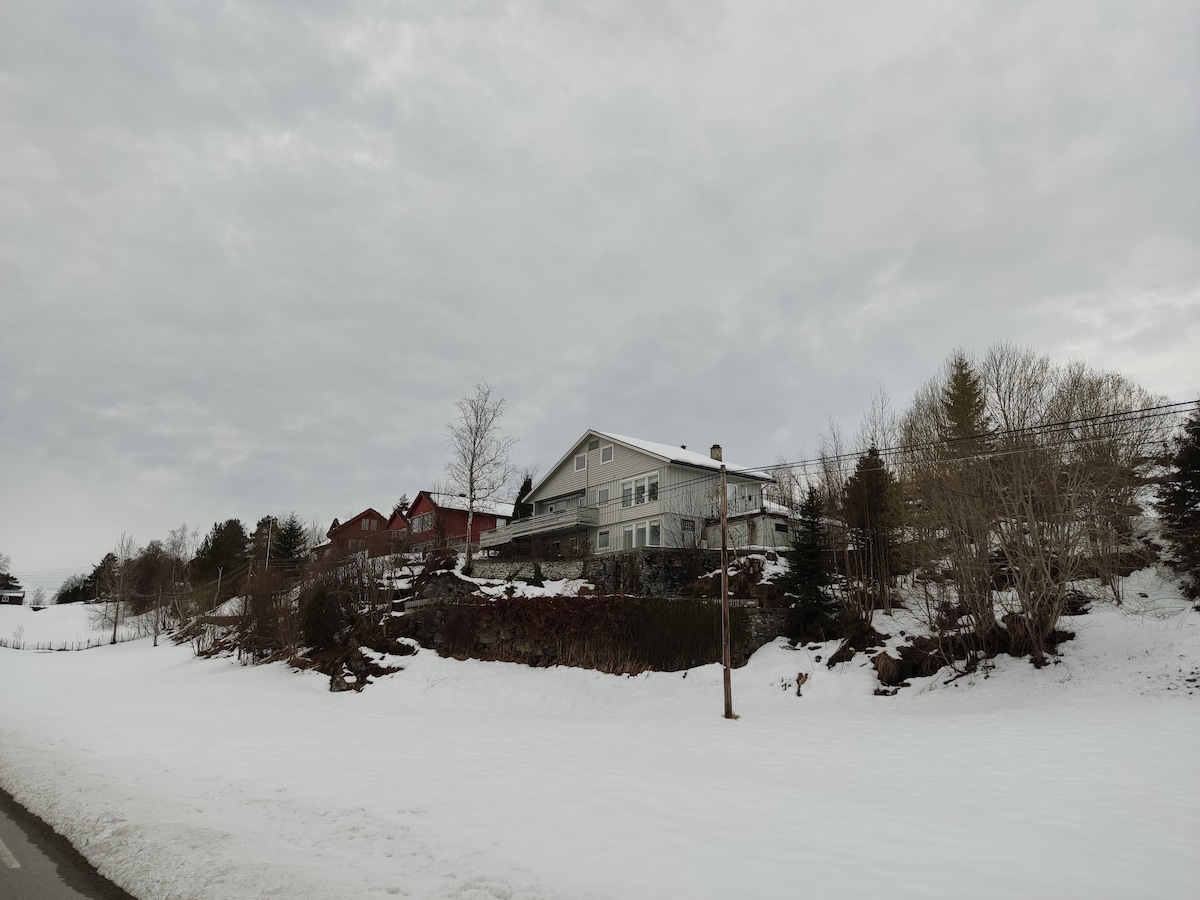 Sólrík og notaleg íbúð á rólegum stað. Staðsett á fallegu Panoramavegen, í miðri fallegri náttúru, nálægt skíðabrekkunum (Fjelli 5.5 km , Ullsheim 18km) og vetrarskíðamiðstöð í Stryn (20km). Margir möguleikar á góðum gönguferðum og hjólaferðum. Í nágrenninu "Open Air Museum" Sagedammen með möguleika á lautarferð fyrir alla fjölskylduna. Loen með frábæra Skylift og Via Ferrata (18km) Briksdalsbren (28km) og Kjendalsbren (30km). Tilvalinn staður til að slaka á með allri fjölskyldunni, bæði vetur og sumar.