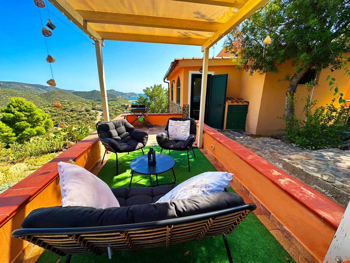Heillandi: blár verönd með útsýni yfir bláa Sardínahafið. Grjótströndin er í innan við 50 metra fjarlægð frá húsinu. Sólsetur fela í sér yndislega og fágaða villu með garði, útihurð, eldhúskrók og stofu sem snýr að sjónum, tvö þægileg tvöföld svefnherbergi og tvöfalt baðherbergi. Láttu þig fangast af litum og ilmum kristaltæra Sardínahafsins.