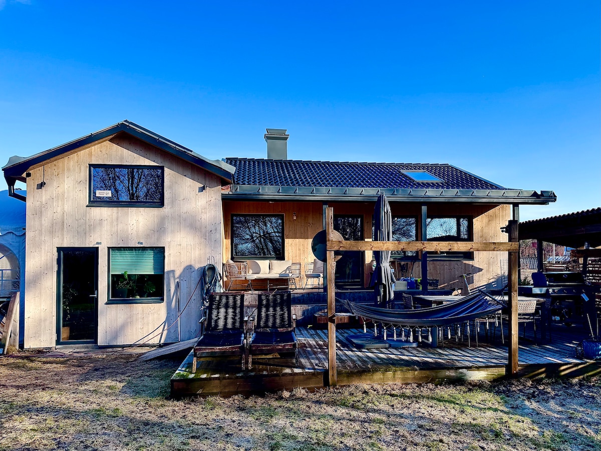 Welcome to Kojan på Skorpan – your Coolcation in Sweden! Perfect for families with children or two families traveling together. The home comfortably accommodates up to four adults and several children. Enjoy a sunny south-facing garden with a fully equipped outdoor kitchen and a fully fenced yard where kids can play safely. Quiet area close to nature, swimming spots, Bromma Blocks shopping and restaurants in Sundbyberg.