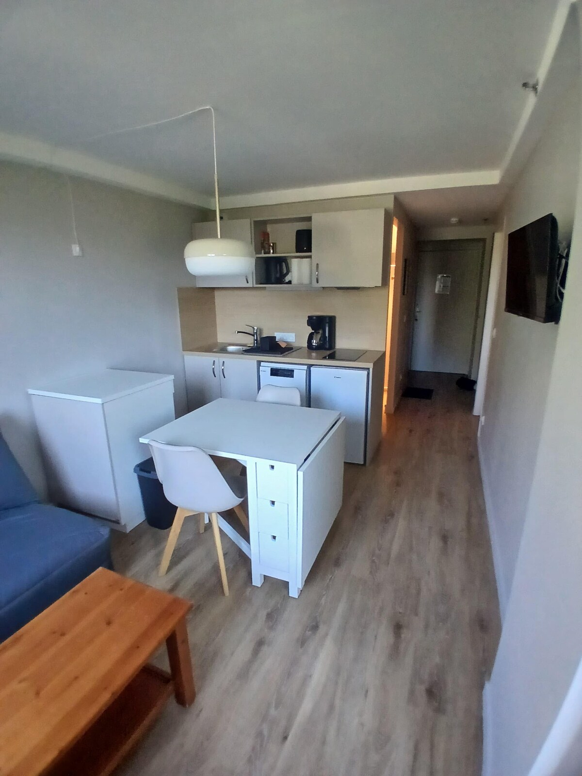 Staðsett í Aussois, á jarðhæð hússins okkar, uppgötvaðu 25 m2 stúdíóið, nálægt þorpinu og í 30 metra fjarlægð frá skutlustöðinni. Stúdíóið samanstendur af: 1 útbúinn eldhúskrókur (ísskápur, örbylgjuofn, 2 rafmagnsplötur úr keramik), kaffivél, brauðrist. Flatskjásjónvarp, Stofa: 1 hjónarúm (160 x 180) með sæng. Rúmið var gert við komu. 1 baðherbergi með sturtu, vaski, salerni. 1 stór skápur/fataskápur Rúmföt og handklæði fylgja.