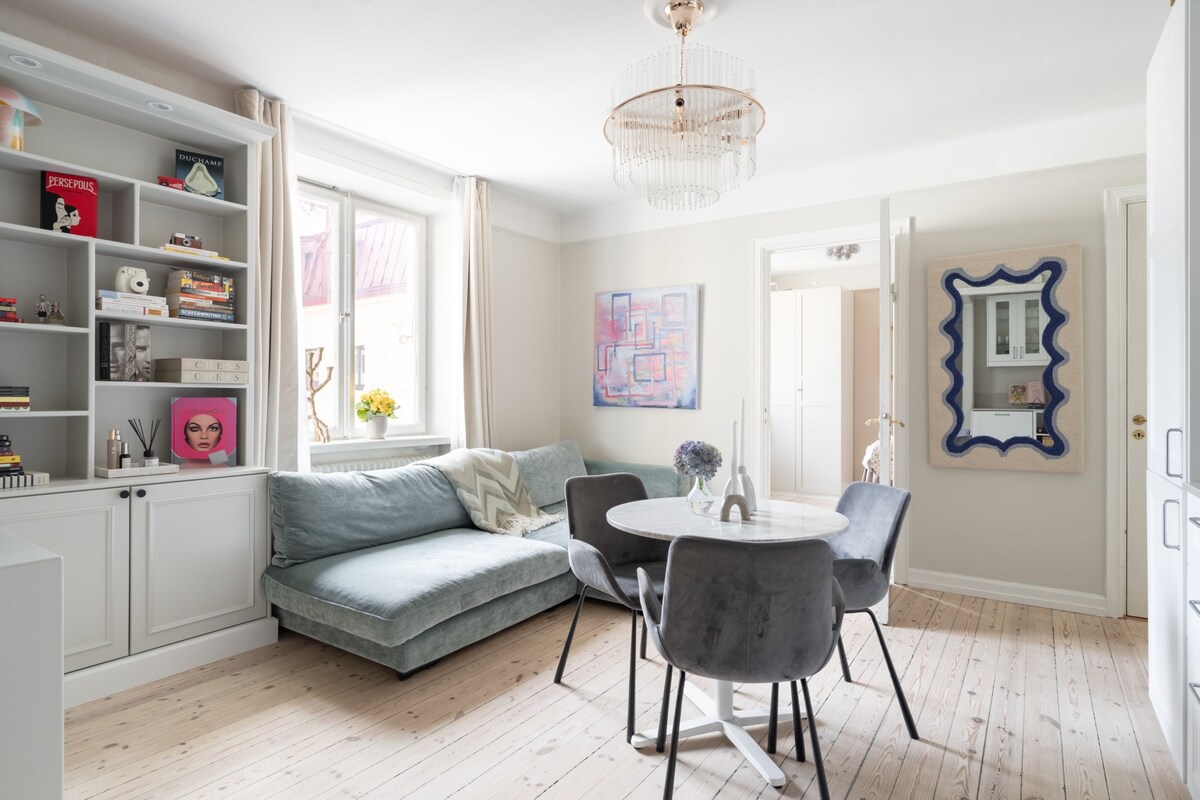 Þessi stílhreina og nútímalega loftíbúð er staðsett í hjarta líflegasta svæðis Stokkhólms. Bjarta, opna rýmið er með hátt til lofts, glæsilegar innréttingar og fullbúið eldhús. Loftherbergið er með útsýni yfir fallega hannaða stofu sem er fullkomin fyrir afslöppun eða fjarvinnu. Þessi risíbúð er steinsnar frá vinsælum kaffihúsum, veitingastöðum og almenningssamgöngum og býður upp á bæði þægindi og þægindi í iðandi miðborginni. Tilvalið fyrir ferðalanga sem eru einir á ferð eða pör sem vilja flott afdrep í borginni.