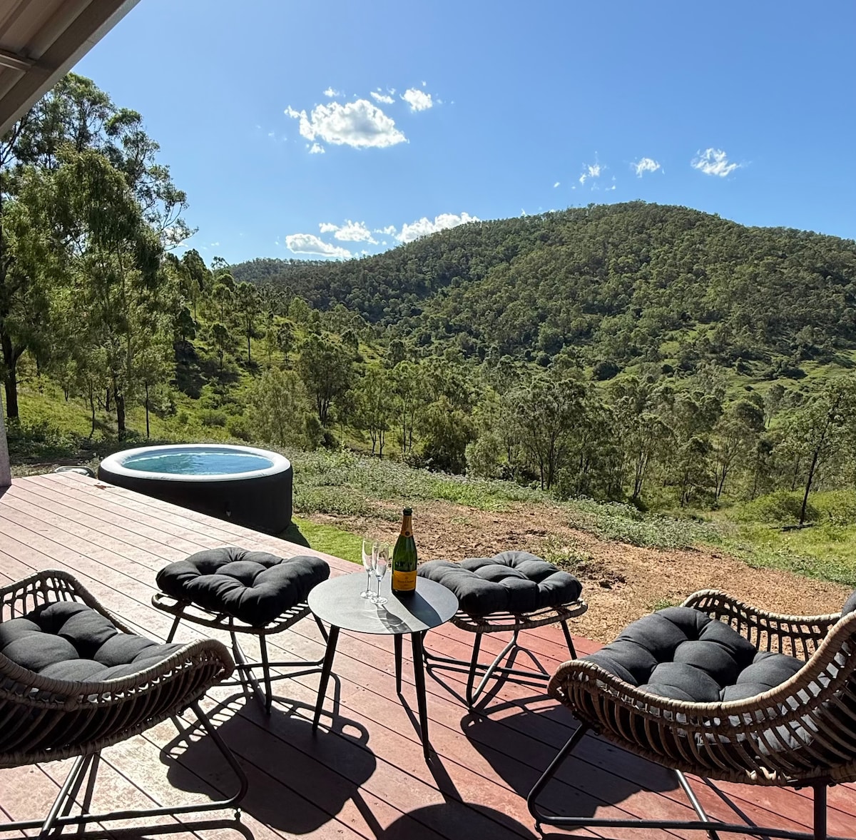 Slakaðu á í þessari kyrrlátu loftræstingu. Njóttu sveitastemningarinnar í 1 klst. og 20 mín. fjarlægð frá miðborg Brisbane og hinum fræga Brisbane-dal Járnbrautarhjólaslóði. Arkitektúr- og garðparadís, í 3 mínútna akstursfjarlægð frá Esk-bæ og hjólalestastígnum, keppnisvellinum, golfklúbbnum og félagsmiðstöðinni. Njóttu nútímalegrar nýbyggðu aðstöðu, endalausra fuglasöngva og gestrisni gestgjafanna. Hægt er að skipta á veggrúmi í einu king-rúmi eða tveimur stökum.