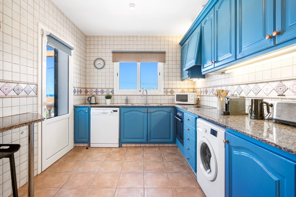 Í húsinu eru öll þægindi, miðstöðvarhitun og A/A. Á jarðhæðinni er dagssvæðið með kurteisissalerni, eldhúsi, borðstofu, þvottahúsi, rúmgóðri stofu með arni og aðgangi að notalegri og rúmgóðri verönd. Á fyrstu hæð eru svefnherbergi, fullbúið en-suite baðherbergi og verönd.