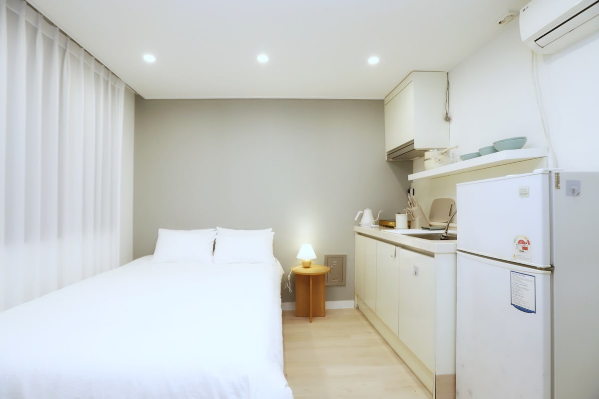 The White Linen House is constantly thinking about creating a clean and safe space with the motto of 'We want to make my precious people happy.' ·We operate a communal kitchen on each floor. The kitchen, located in the hallway, is shared among guests from three rooms. ·Password changed for each guest, building entrance door lock, floor door lock, safe accommodation (CCTV outside the entrance, CCTV in the hallway) It provides a space to make unforgettable memories with precious people.