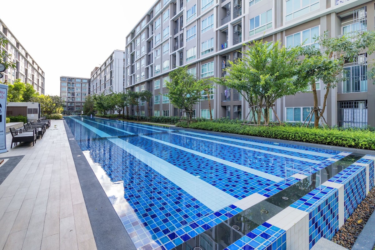 Minimalist 30 sqm room with a nature view Cozy like home! ・Washer & dryer ・Water purifier ・High-speed Wi-Fi ・Smart TV ・Compact kitchen, microwave, fridge ・Comfy bed with hotel-grade linens ・Free access to pool, gym & parking ・Close to PSU, Central Festival, Makro & local food spots Great for couples, travelers, students, or remote workers in Hatyai