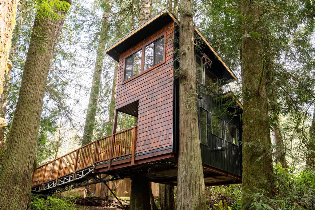 A truly unique treehouse perched 30 feet high among the trees. This amazing structure is attached to 3 large cedars and 1 giant maple using advanced tree tabs that allow the trees to sway gently, providing a natural and immersive experience. The large deck offers stunning views across the Salish Sea to the Mountains of Washington state. With all the modern amenities you could need, it's the perfect place to relax and unwind. Experience the magic and wonder of treehouse living for yourself!