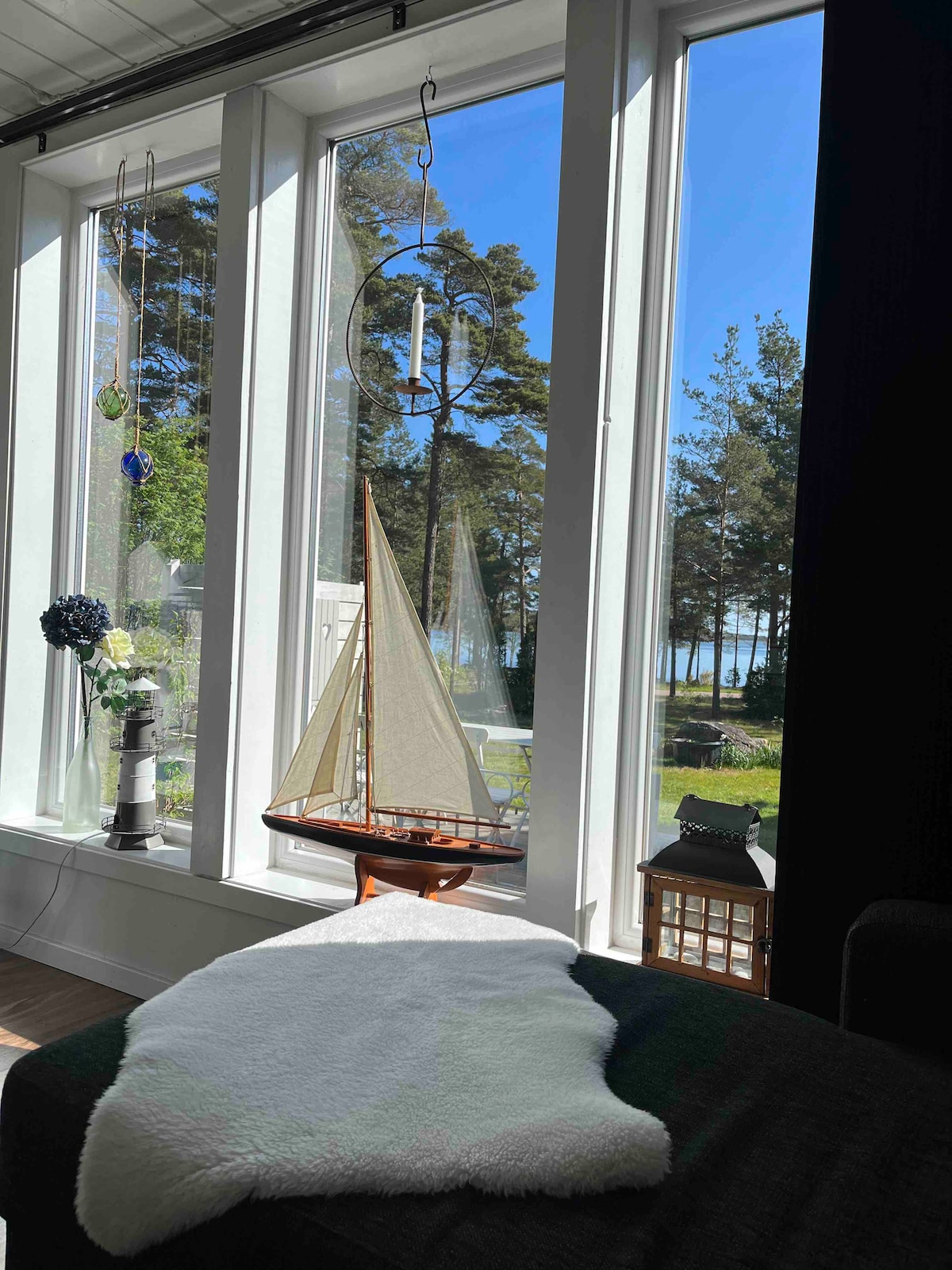 Einkaeyja með sjávarútsýni, ró og ósnortinni eyjaklasanáttúru. Róðu í kajak, farðu á fiskveiðar, syndaðu og njóttu stjörnubjart himins (á haustin er jafnvel möguleiki á að sjá norðurljósin) við eldstæðið undir laufskálanum. Fylgstu með haförnunum svífa yfir þegar þú slappar af á veröndinni með bók eða vínglas. Einstök gistiaðstaða með öllum nútímaþægindum. Bátur innifalinn, þú stýrir sjálfur (leiðbeiningar á staðnum). Staður fyrir algjöra slökun, þín eigin eyja. Þín ein og eingöngu.