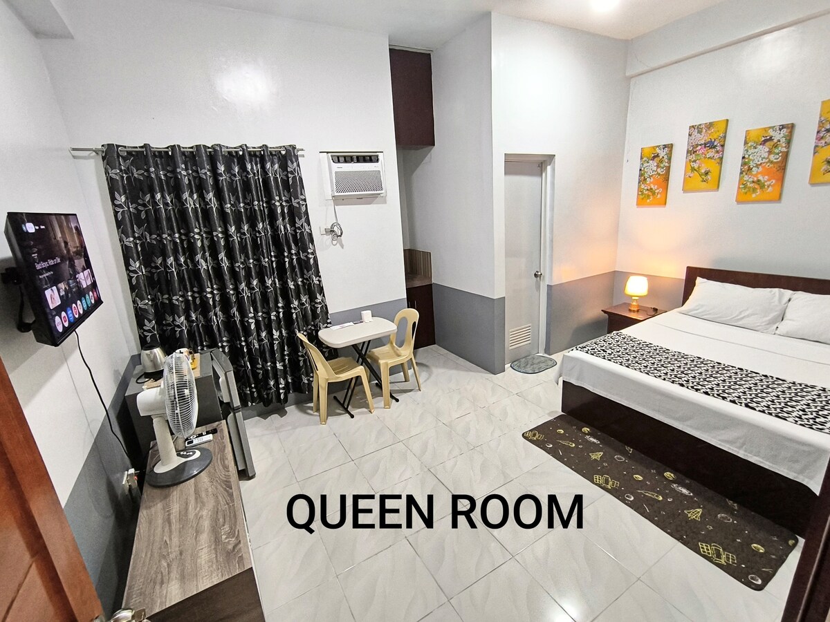 Fullbúin, loftkæld stúdíóíbúð með eldhúsi og vörum til matargerðar, katli, flötu snjallsjónvarpi (Netflix)og kapalrás, ókeypis þráðlausu neti, 1 salerni og baði með heitri og kaldri sturtu. Herbergið er staðsett á annarri hæð byggingarinnar. Innritun kl. 14:00, útritun 12NN Snemmbúin innritun er möguleg ef eignin er þegar laus. Gjaldið er (P400) þegar þú innritar þig á milli 6:00 og 11:00.
